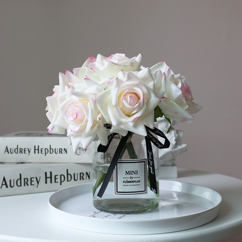 5 Heads curled edge rose bouquet real touch artificial flowers rose wedding bridal bouquet party festival home decor CB5TBSMG