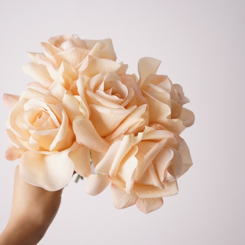 Premium Real-Touch Artificial Rose Bouquet: 5 stems featuring large 11cm rose heads and standing approximately 26cm tall. These ultra-realistic artificial roses boast a moisture-retaining texture for an authentic feel. Perfect for bridal bouquets, home decor, wedding arrangements, and parties, offering lasting elegance.