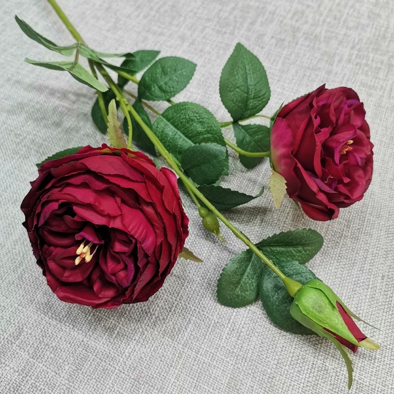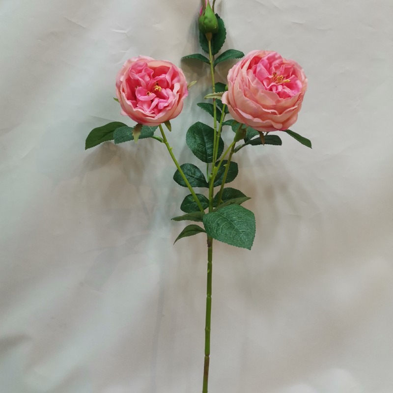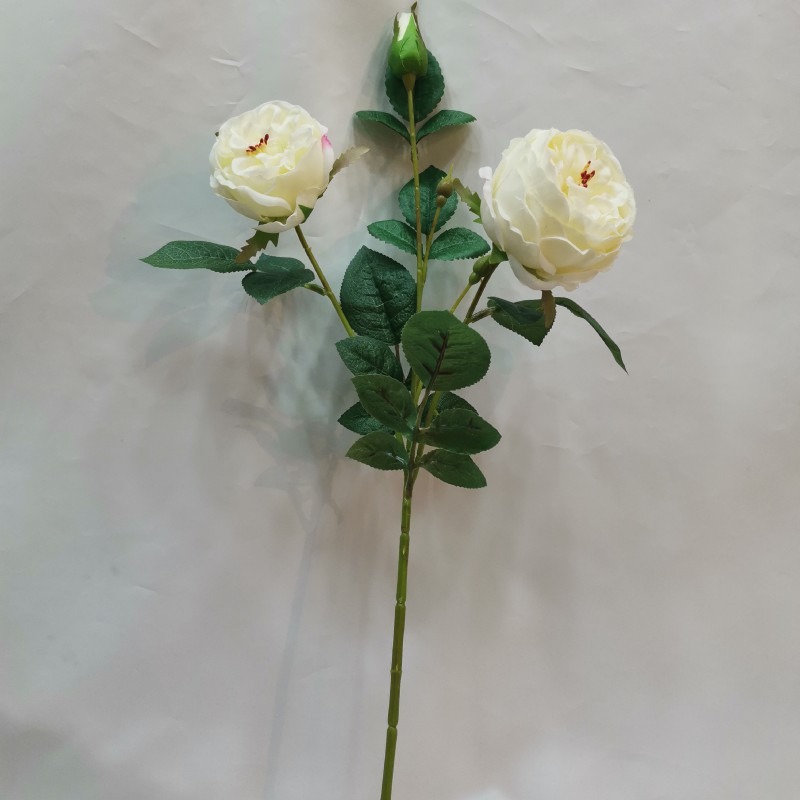 This exquisite artificial rose features a lifelike design with three bloom stages: two fully opened flowers and one delicate bud. The stem measures 62cm in total height, with each realistic flower head approximately 8.5cm and 7cm in diameter.