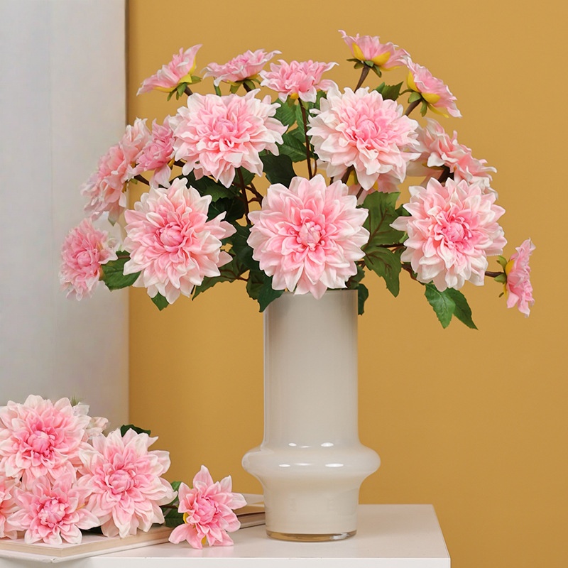 Realistic Touch Simulation Dahlia Artificial Flower This lifelike artificial flower features a 66cm stem with two vibrant blooms: a large 12cm head and a smaller 8cm companion. Meticulously crafted to mimic natural texture and color gradients, it offers an ultra-realistic appearance and soft, touchable petals. Ideal for enhancing home decor, weddings, parties, or events, this high-quality artificial flower combines durability with elegance. Its versatile design suits vases, centerpieces, or bouquets, providing timeless beauty without maintenance. Perfect for adding sophistication to any space, this dahlia exemplifies the artistry of modern artificial flowers.