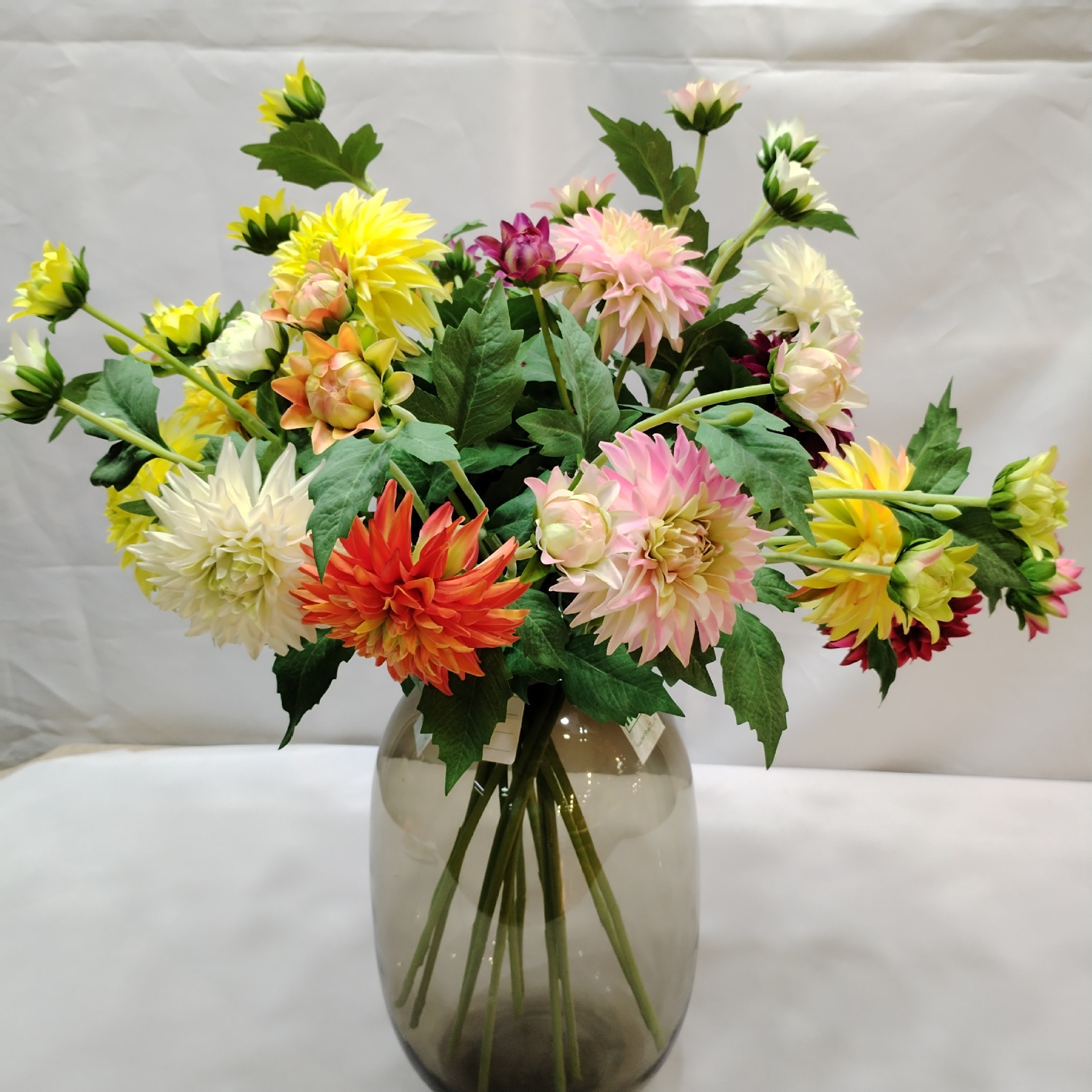 These stunningly realistic touch-feel faux dahlia stems offer amazing lifelike texture and visual appeal. Each 62cm tall stem features one gorgeous 10cm blossom accompanied by two delicate 5cm buds, creating a beautifully balanced and natural presentation. Perfect for adding elegant, lasting color to home décor, wedding arrangements, and various party settings, they provide forever-blooming beauty without any upkeep.