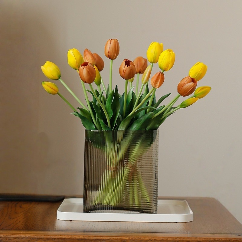 Durable and low-maintenance, these silicone artificial flowers retain their vibrant hues without fading or wilting, making them ideal for long-term use. The flexible, soft-touch material ensures a safe, non-toxic option for any setting. Perfect for adding a touch of springtime charm to indoor spaces or special occasions, this faux tulip bouquet combines sustainability with timeless style