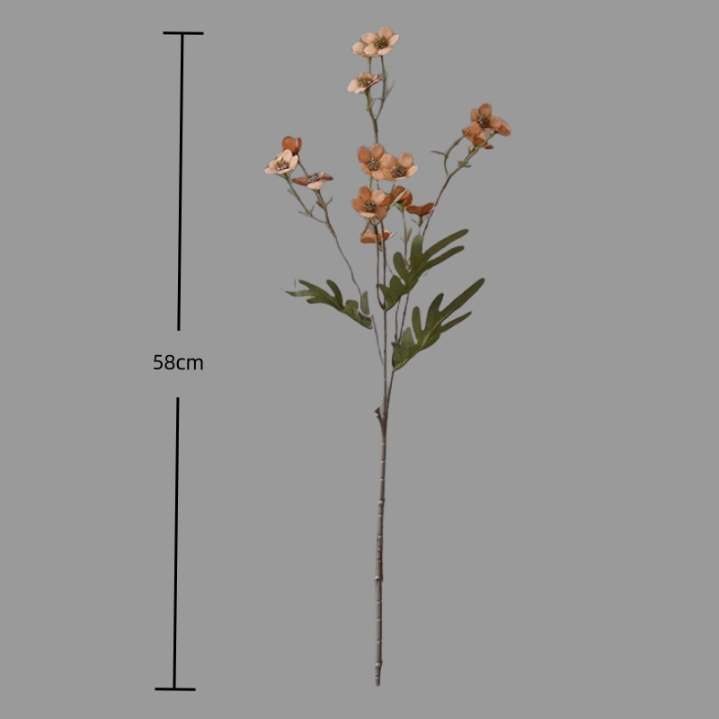 Crafted to mimic natural beauty, this artificial flower features a retro-inspired wintersweet design. Each branch measures 58cm in length, adorned with 15 lifelike blooms, each approx. 3cm in diameter. The delicate, ivory-toned petals and weathered stems evoke a nostalgic charm, perfect for enhancing home décor, weddings, parties, and festive gatherings.
