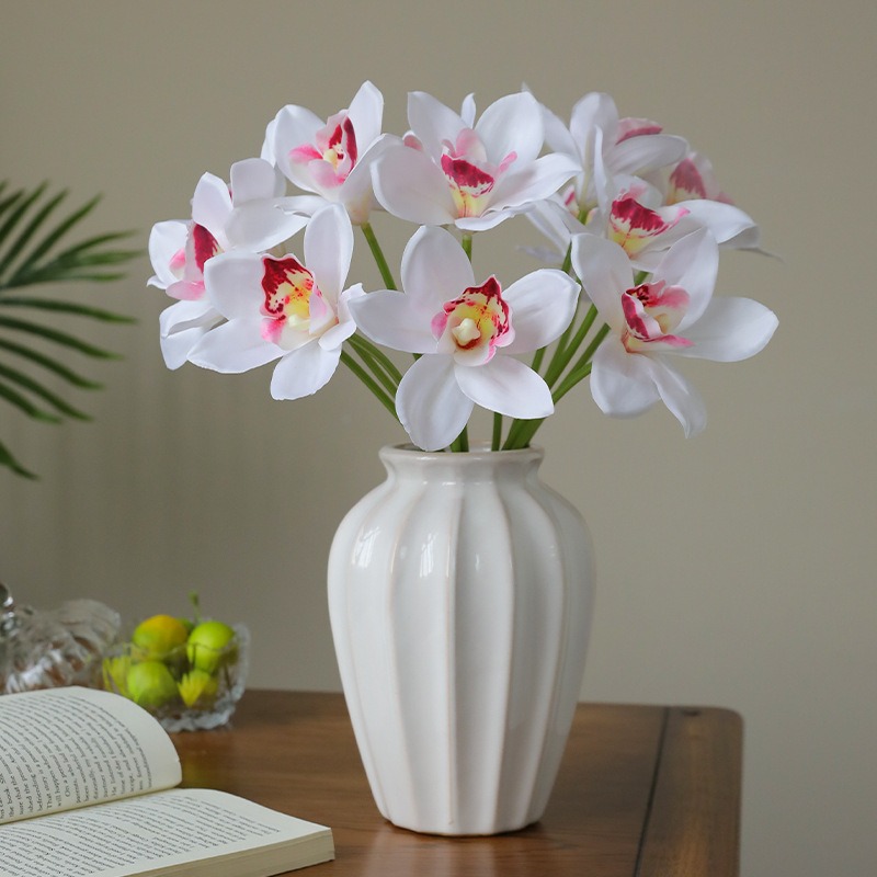 Artificial Cymbidium Bouquet This elegant artificial flower set features 6 lifelike stems (38cm tall), perfect for home decor, garden arrangements, bridal bouquets, and wedding accents. Crafted with vibrant, durable materials, these artificial cymbidiums retain their beauty without watering or fading. Ideal for adding timeless charm to any space, the bouquet offers hassle-free maintenance and endless versatility. Whether enhancing interiors, ceremonies, or outdoor settings, these artificial flowers deliver natural elegance year-round.